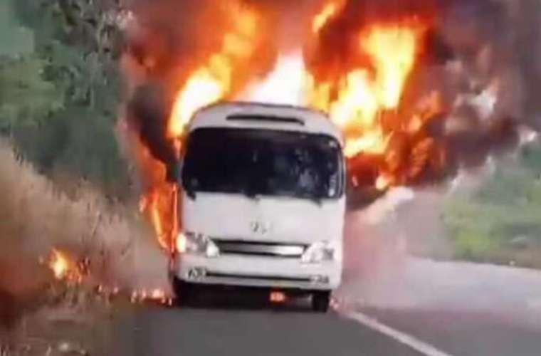Un bus tipo coaster quedó envuelto en llamas en la carretera Interamericana, a la altura de San Lorenzo, en la provincia de Chiriquí.