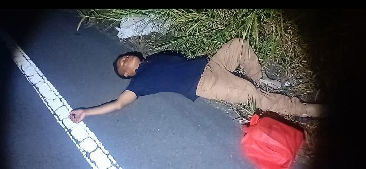 El hecho ocurrió cerca de la estación de combustible Terpel, cuando una unidad policial que patrullaba preventivamente por el área divisó al hombre tirado en el pavimento, justo donde circulan a diario vehículos de carga y transporte colectivo.