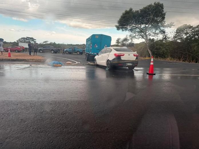Sedán blanco impacta contra camión y deja una víctima fatal