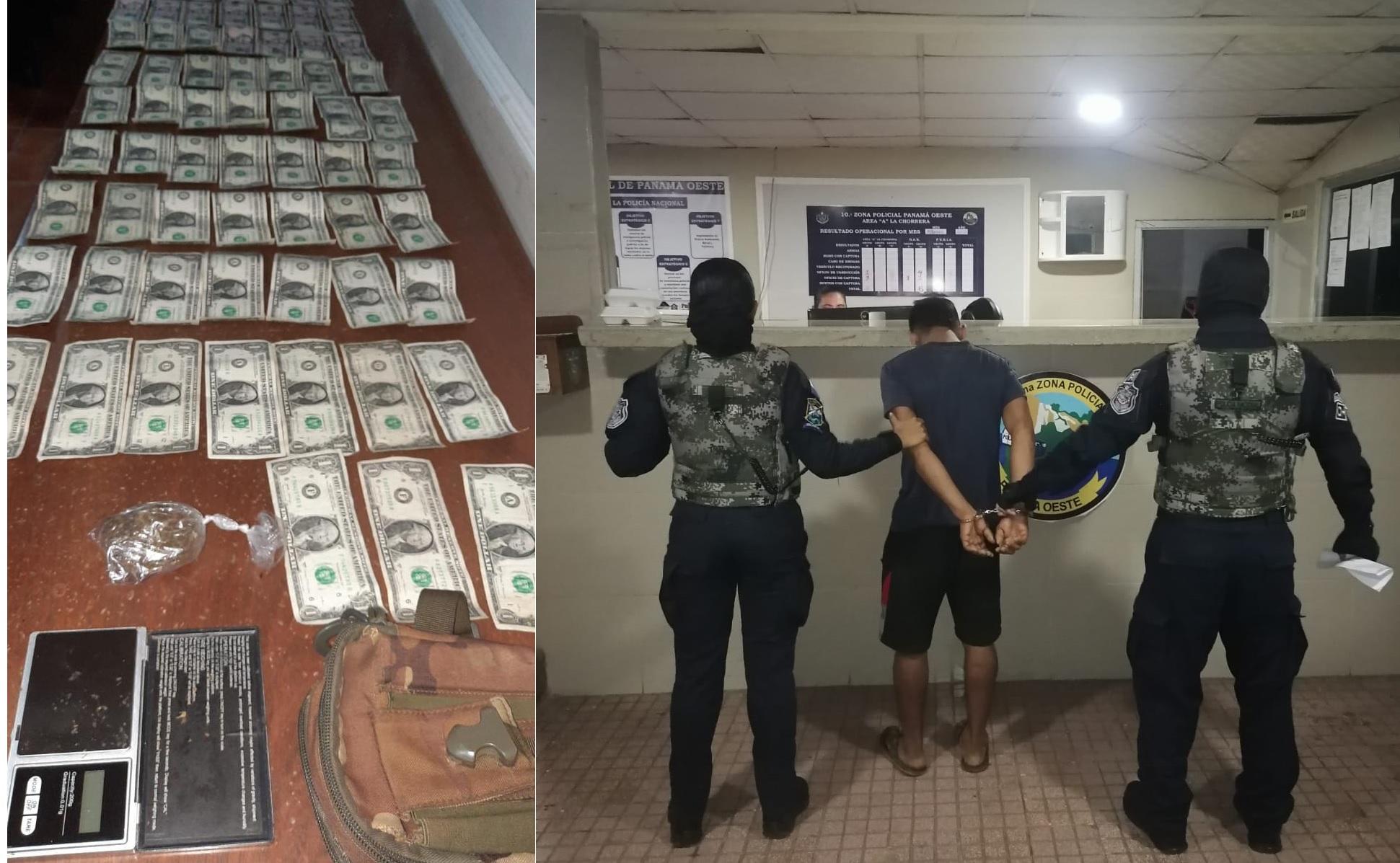 En otro operativo en el corregimiento de Barrio Colón, fue capturado un individuo, el cual portaba dinero en efectivo, sobres con sustancia ilícita y una pesa digital.