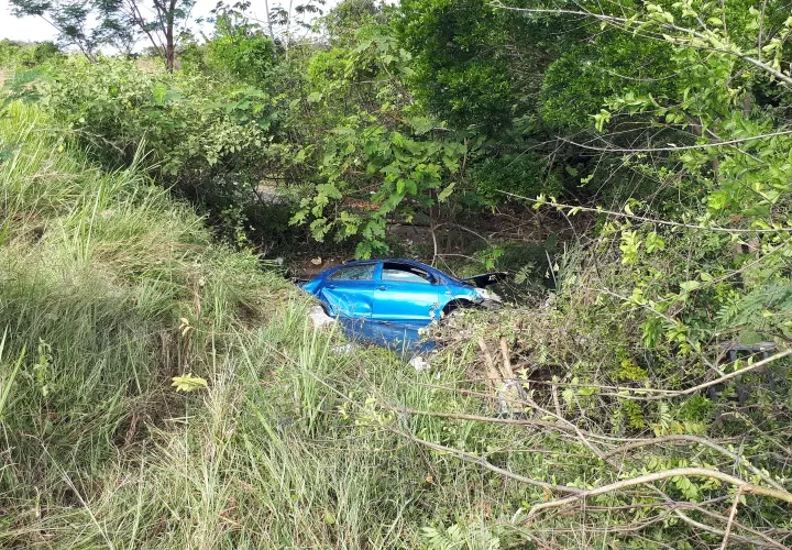 En la vía Interamericana, a la salida de Penonomé con dirección hacia Aguadulce y cerca al “Taller Ingramar”, un auto de color azul quedó en una quebrada. Su conductor resultó con heridas leves y pudo salir por sus propios medios del carro para contar que, afortunadamente, el agua de la quebrada amortiguó el golpe y él pudo salvar su vida.