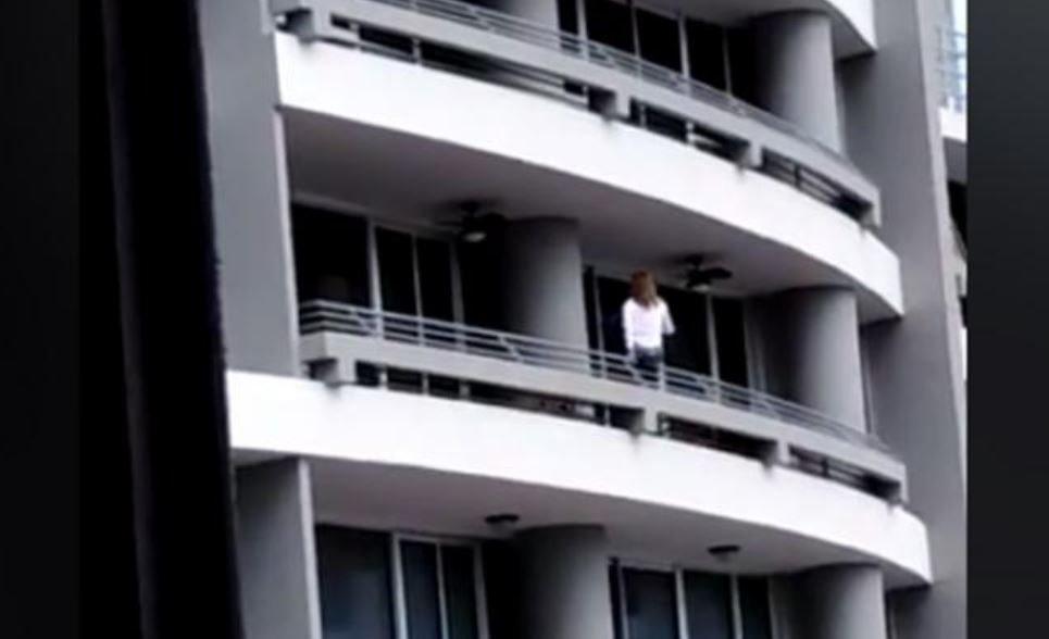 Se sentó en el barandal de su apartamento y aparentemente resbaló y a medida que iba cayendo sujetaba en su mano derecha un "selfie stick" o "palo para tomar fotos".
