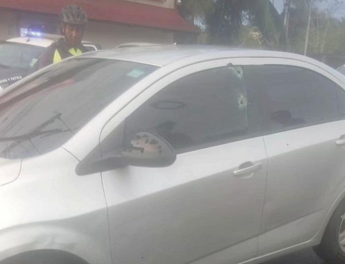 Dos balas impactaron en el borde la ventana del conductor y otras en una de las llantas delanteras del vehículo.