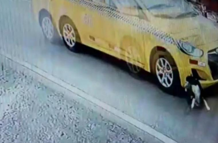 Mediante una cámara de video se observa como el taxista, en vez de esquivar al animalito, se va de frente con ella, y sale como si nada, en medio de los gritos de dolor de la perrita.