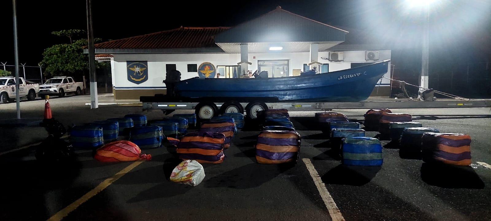 En coordinación con la Fiscalía de Drogas de Herrera y Los Santos, los detenidos y la droga incautada fueron trasladados a la Estación Aeronaval de Mensabé, donde se contabilizaron 31 bultos con un total de 1,237 paquetes de presunta sustancia ilícita.
