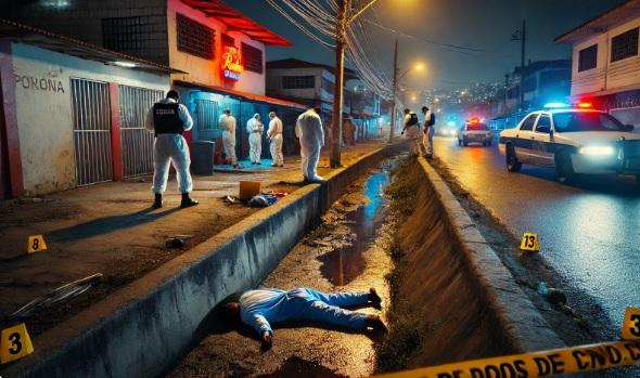 El crimen ocurrió a las 10:25 p.m. del domingo 9 de febrero, cuando una llamada anónima alertó a las autoridades sobre un cuerpo tirado en una cuneta, próximo al antiguo Bar Ana. Al llegar al sitio, los uniformados confirmaron la escena: Erick Efraín Peña Mela, de 35 años, yacía sin signos vitales con varios proyectiles incrustados en su costado derecho.