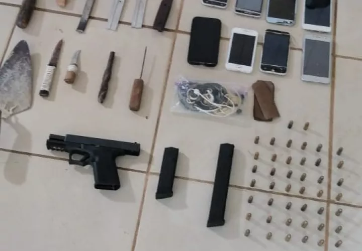 Un arma de fuego con dos proveedores, municiones, objetos punzocortantes, celulares, entre otros decomisaron las autoridades penitenciarias en el sector Guantánamo 2, ubicado en el Centro Penitenciario La Joya, luego que la Policía Nacional observará en horas de la noche a un privado de libertad fuera