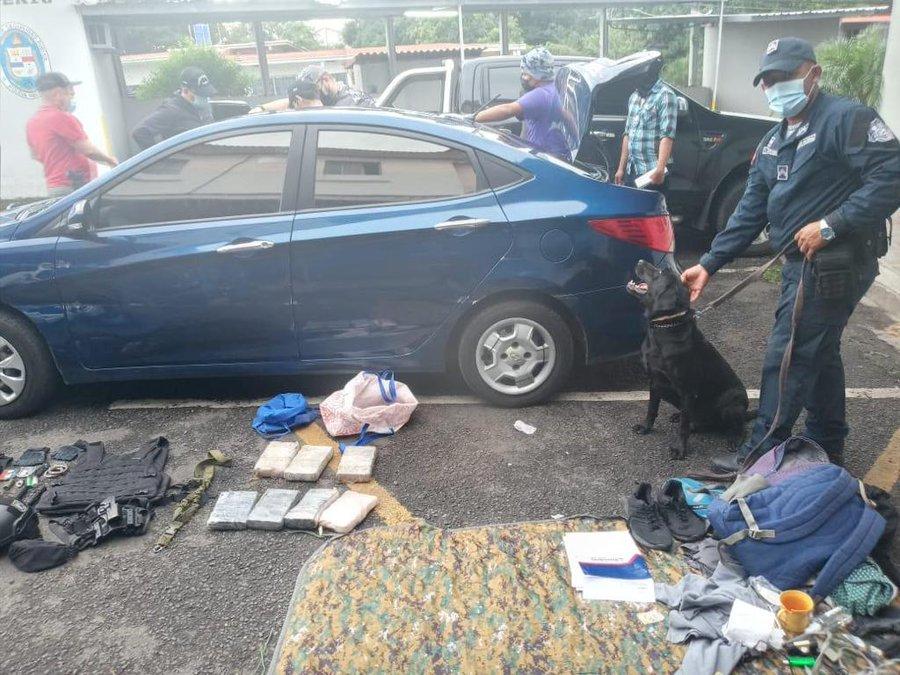 Un cabo policial del grupo Alfa de la Policía Nacional fue sorprendido con 7 paquetes de presunta droga, ubicados en un auto, tipo sedán, en el que se transportaba.