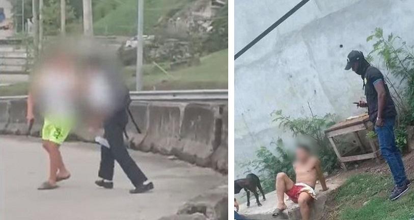 En el video se observa como un sujeto, mayor de edad, que viste pantalón bermudas de color verde, camiseta blanca con magas de crema y calzando chancletas, intersepta al estudiante del Instituto Rubiano que acababa de bajarse del bus, en pleno Corredor Norte, próximo a la salida de Tinajitas.