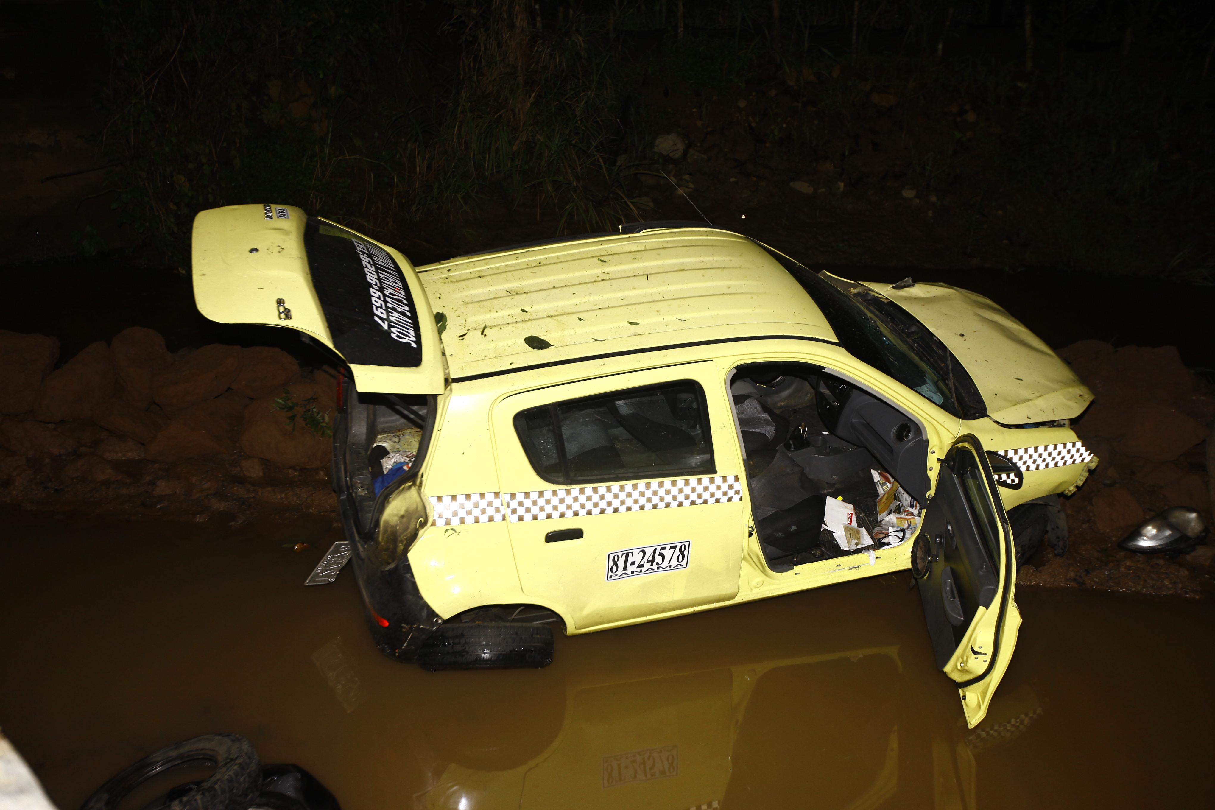 En Loma Cová, Arraiján, próximo a la antigua caseta de control 2, el conductor de un taxi- aparentemente- se quedó dormido al volante y terminó en una quebrada.