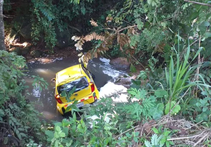 Un taxista y un pasajero resultaron con golpes leves luego que el auto, tipo Kia Picanto, con matrícula 008455, cayera desde un puente a una quebrada. Este hecho producto de una colisión ocurrió hoy en Villa Daniela, vía a El Trapichito en La Chorrera.