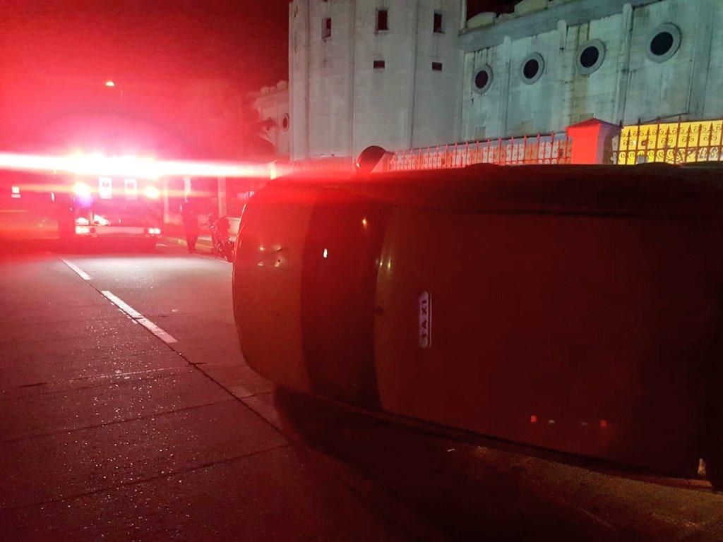 Panamá- Un herido dejó el vuelco de un taxi en Amador, frente al centro de convenciones.