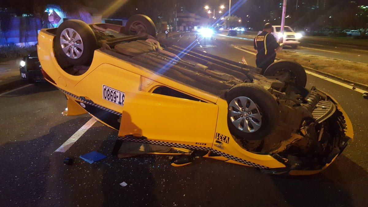 Un vehículo taxi, con matrícula 8T-6980, se volcó en la avenida Balboa, a la altura de la Cinta Costera, en horas de la madrugada de hoy.