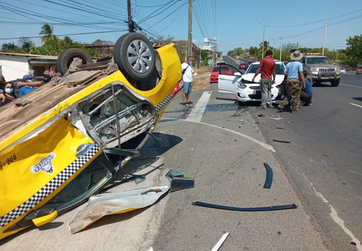 Cuatro personas resultaron lesionadas tras un accidente ocurrido en la vía circunvalación de Chitré, Herrera, en el que un taxi terminó volcado sobre la vía.