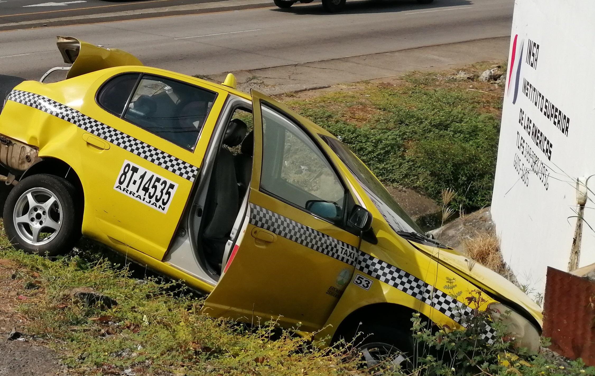 Tras el impacto, el taxi se salió de la vía e impactando contra una alcantarilla.
