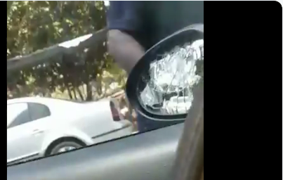 El suceso fue captado en un video y se observa cómo el transportista, con matrícula 8T28848, se baja del vehículo con una llave mecánica en mano, lanza improperios contra el otro conductor y opta por romperle el retrovisor.