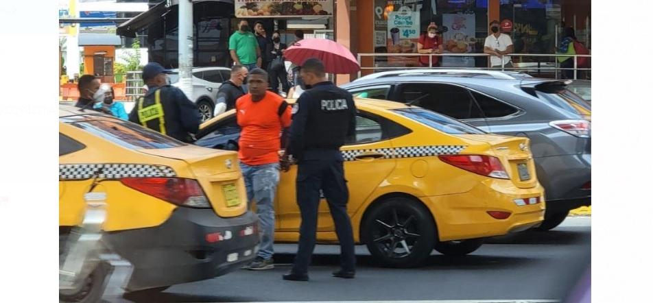 Un bochornoso incidente entre una unidad de la Policía de Tránsito y un conductor de taxi, se registró la tarde de este viernes, en medio de la vía, en el sector de Paitilla, en el corregimiento de San Francisco.