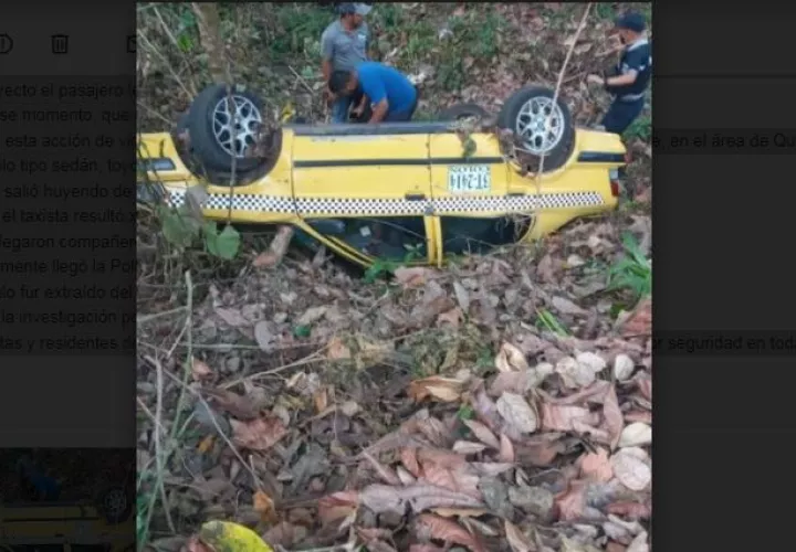 Debido a esta acción de violencia, el taxista pierde el control y se va hacia un barranco y termina volcado, en el área de Quebrada Ancha, área de la Transistmica.