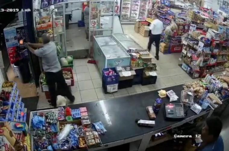 El vídeo de seguridad del minisúper se muestra al exmiembro de la fuerza policial disparando en al menos en siete ocasiones contra los delincuentes, mientras que abandonan el local.