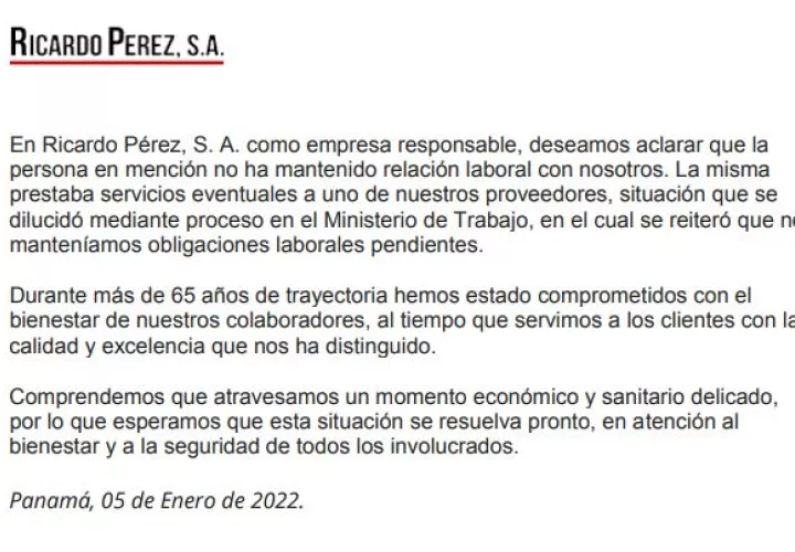 Por su parte, Ricardo Pérez emitió un comunicado en el que aclara que el hombre que se mantuvo durante dos horas en el techo del puente peatonal de Plaza Edison, no ha mantenido relación laboral con la empresa.