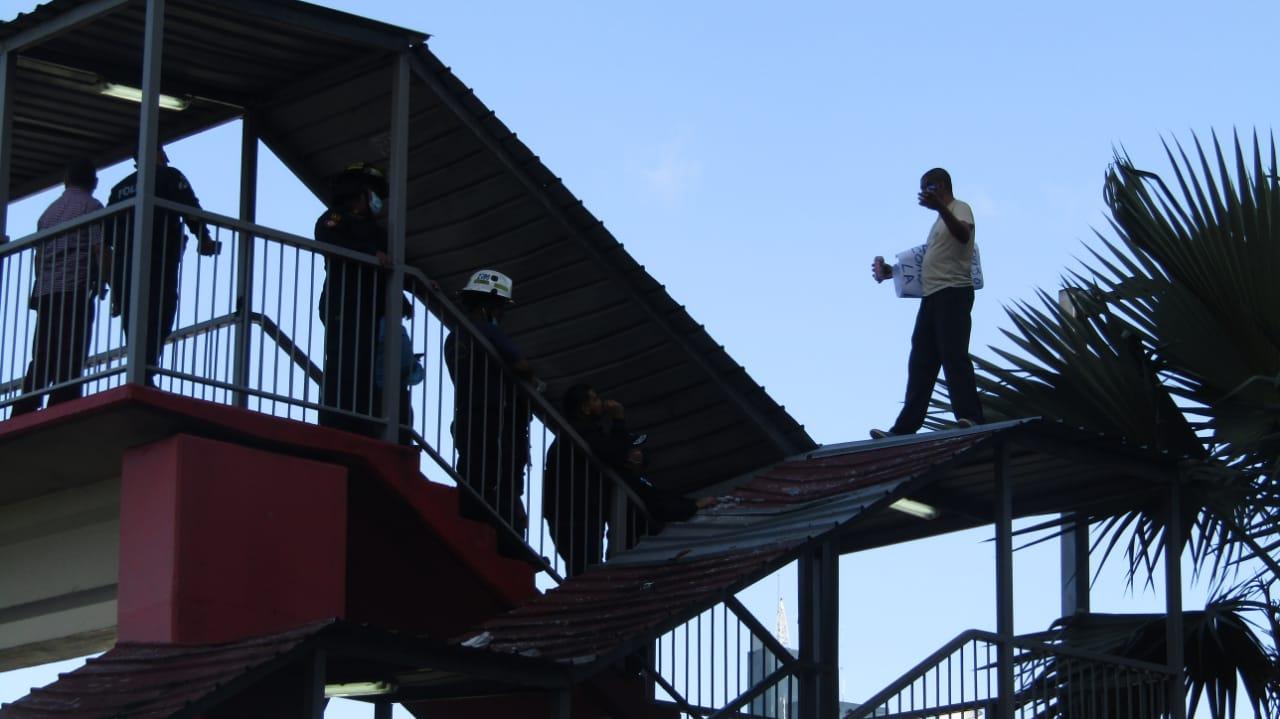 La situación mantuvo en vilo a las autoridades del Ministerio de Trabajo y agentes policiales y unidades bomberiles, quienes mantuvieron un diálogo para que converserlo que se bajara de la estructura.
