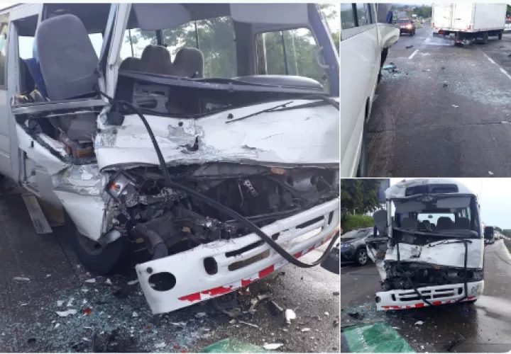 Diez heridos dejó una colisión entre un bus de la ruta La Pintada-Panamá, tipo coaster, y un camión en la vía Interamericana, a la altura de Villa Mireya, distrito de Capira, con dirección hacia el interior del país, en la mañana de hoy, lunes.