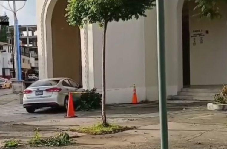 En medio del ataque armado y en su intento por escapar de la lluvia de balas, el conductor perdió el control del volante de su vehículo, ingresó a los predios del estadio Juan Demóstenes Arosemena y terminó chocando contra una de las pilastras de la entrada del coliseo.