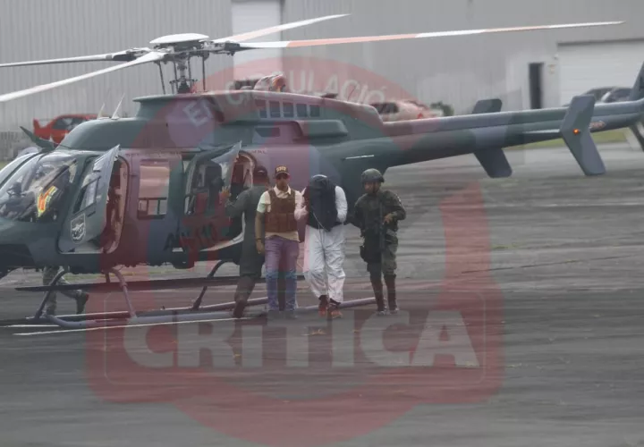 Con el rostro cubierto, esposado y fuertemente custodiado por unidades policiales llegó hoy en horas del mediodía al aeropuerto de Albrook José del Carmen Arroyo Bethancourt alias "Moraito", uno de los presuntos autores del triple crimen en perjuicio de una familia en el sector de El Chumical, Arraiján.