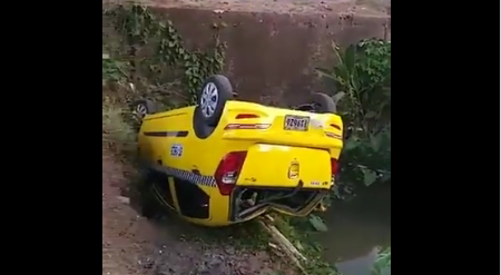 ¡Tremendo susto! Conductor de taxi y estudiante terminan en una cuneta [Video]