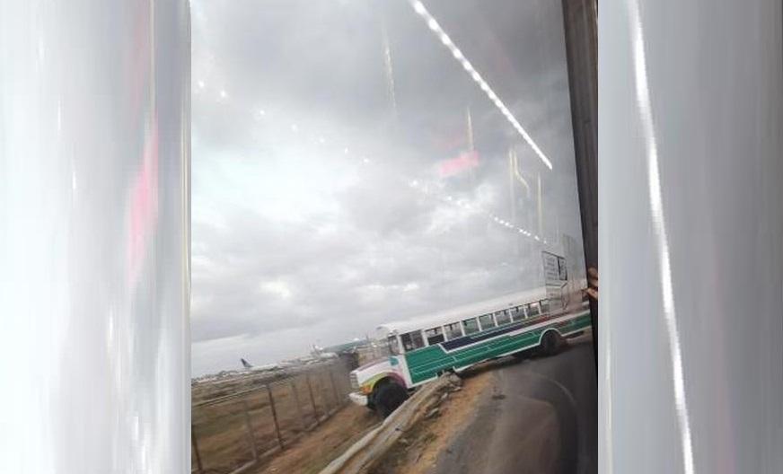 Las llantas delanteras del colectivo sobrepasaron la barda de contención, en toda la curva de la rotonda que se ubica próxima al Aeropuerto Internacional de Tocumen, presumiblemente, porque realizó el giro demasiado abierto, pues según un video publicado en Twitter el conductor venía haciendo regata con otro colectivo
