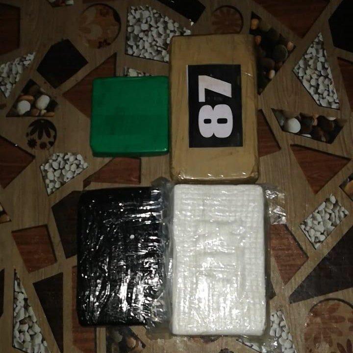 Uno de los paquetes de droga tenía una etiqueta con el número 87, además se incautó adicionamente un sobrecito de sustancia ilicita .