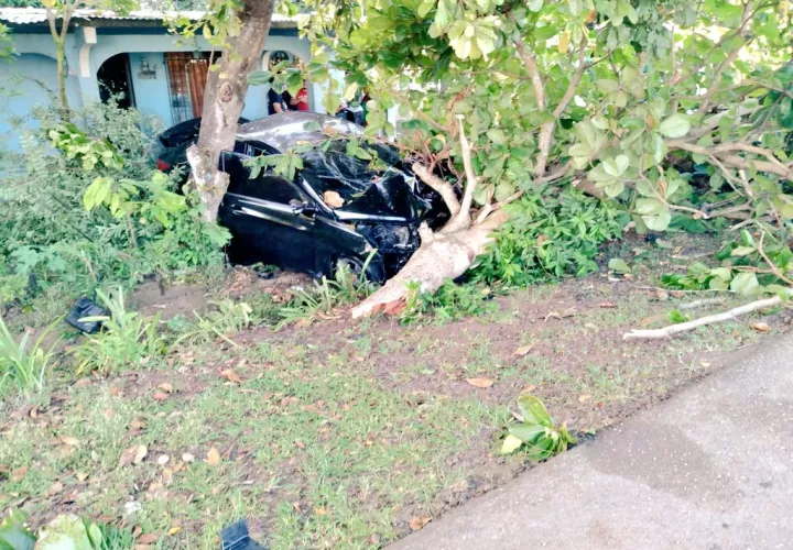 Los primeros informes indican que el auto se salió de la vía, impactando con el árbol ubicado en la parte frontal de una residencia.