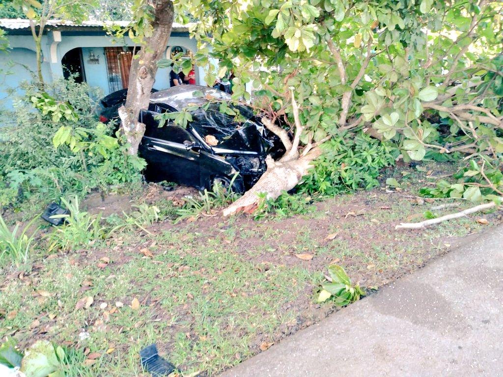 Los primeros informes indican que el auto se salió de la vía, impactando con el árbol ubicado en la parte frontal de una residencia.