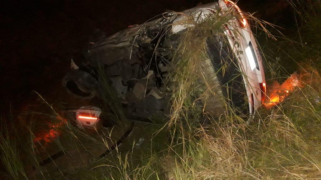 El conductor perdió en el manejo se salió en la vía y terminó volcado entre unos herbazales