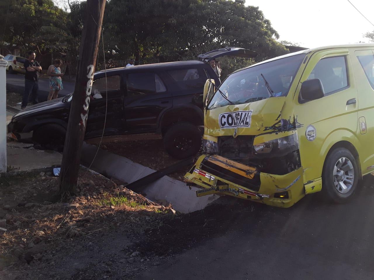 Un gran susto se llevaron al menos 10 ocupantes de un bus colegial, luego de una colisión con una camioneta dada a primeras horas de la mañana por el sector conocido como El Encanto, en el corregimiento de Monagrillo de Chitré.