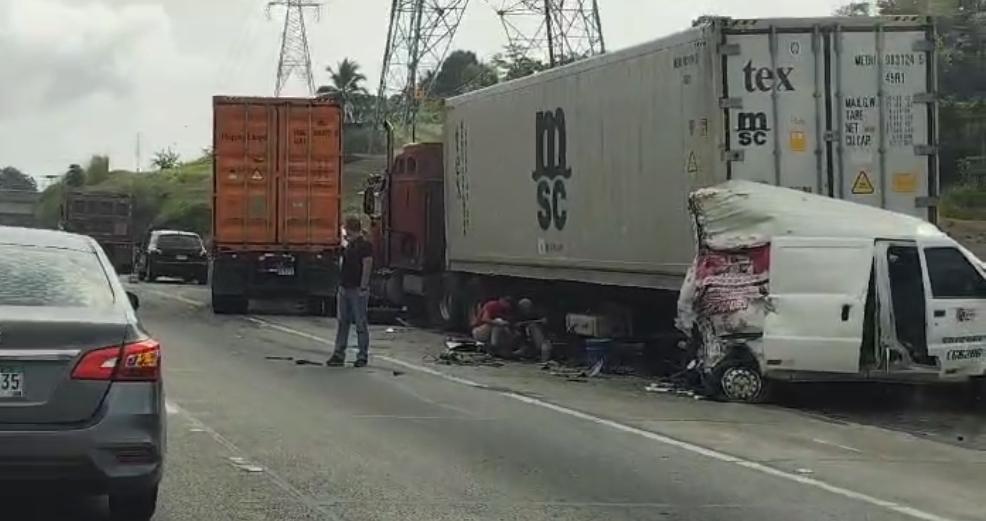 Una triple colisión entre dos camiones pesados y un panel blanco ocurrió la mañana del sábado en la autopista Panamá-Colón, dejando varios lesionados, principalmente a los conductores de los vehículos involucrados.