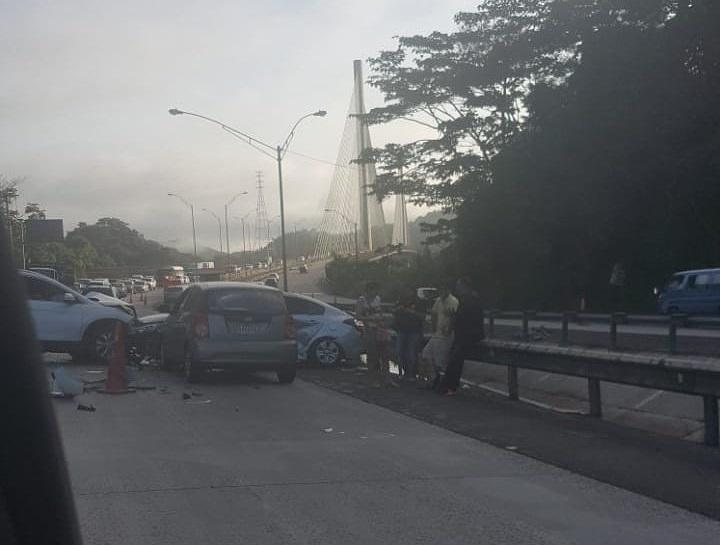 Panamá- Una colisión múltiple se registró la mañana de este lunes en la vía Centenario, a la altura del puente, en dirección a Panamá Oeste, lo que afectó el tráfico vehicular por esta vía.