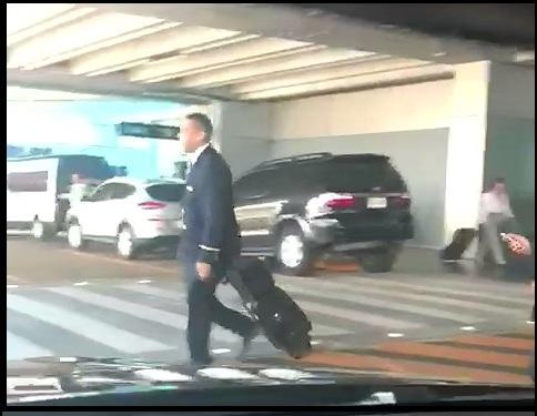 Las imágenes muestran al tripulante caminando rápidamente hacia un vehículo en el que lo espera cerca del área de estacionamientos de la terminal, introduce una maleta en el asiento trasero del auto e ingresa en el asiento delantero del copiloto y se retira del lugar.