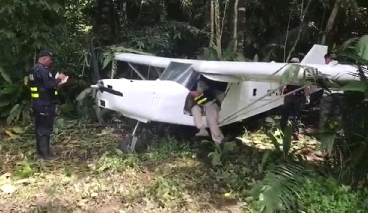 Según un comunicado emitido por la fuerza pública de este país, durante un patrullaje en el sector por parte de las unidades observan dentro de una finca un sarán negro que tapaba lo que resultó ser una avioneta tipo ultraligero.