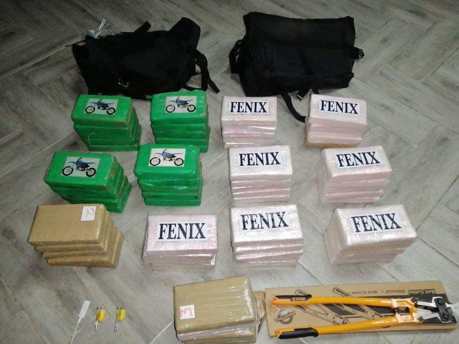 Los paquetes estaban distribuidos en dos maletines y con un etiquetado con la palabra FENIX y el dibujo de una motocicleta.
