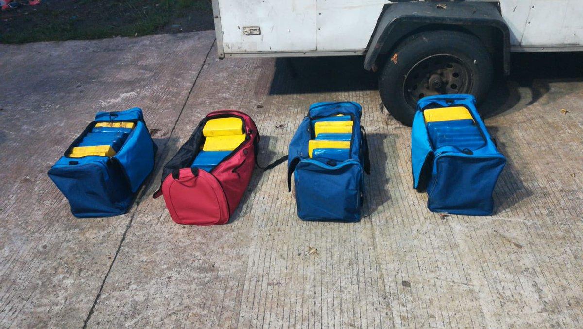 Los paquetes de la sustancia ilícita estaban ocultos en cuatro maletines y transportada en un vehículo.