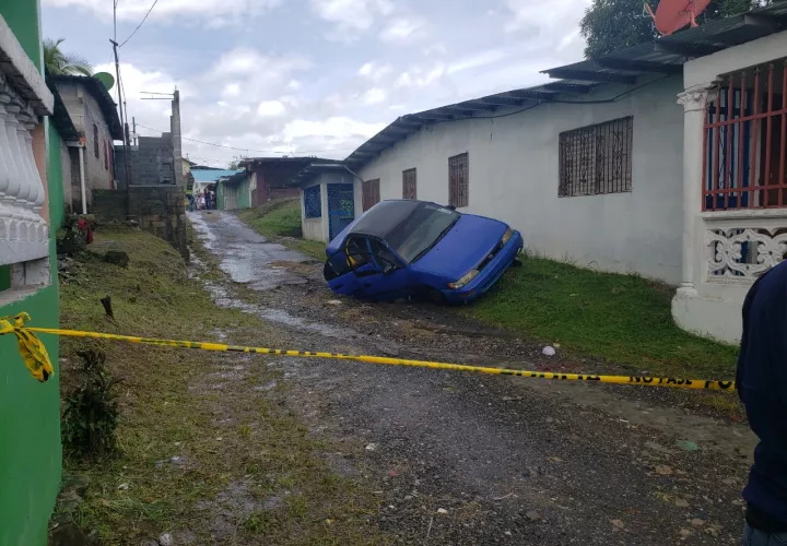 En la escena del crimen hay un auto, color azul, que quedó atascado a orilla de una vivienda.