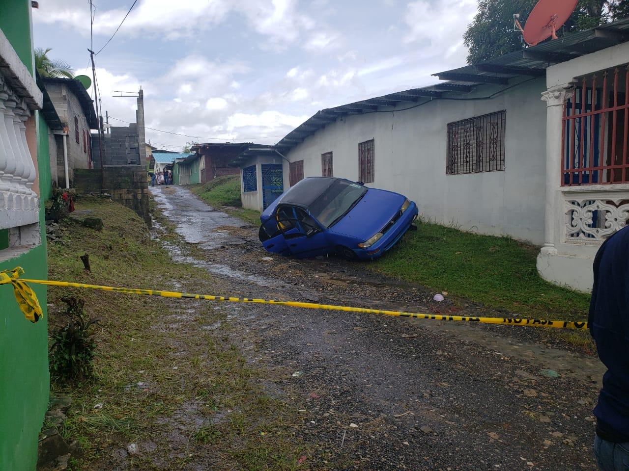 En la escena del crimen hay un auto, color azul, que quedó atascado a orilla de una vivienda.