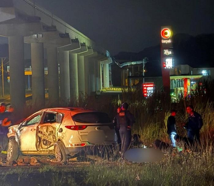 Según los testigos, el conductor del automóvil colisionó contra un muro de concreto y luego perdió el control, volcando el vehículo. Uno de los ocupantes fue expulsado y falleció en el lugar del accidente. Al realizar la prueba de alcoholemia al conductor, este marcó 75 microgramos de alcohol por decilitro de sangre.