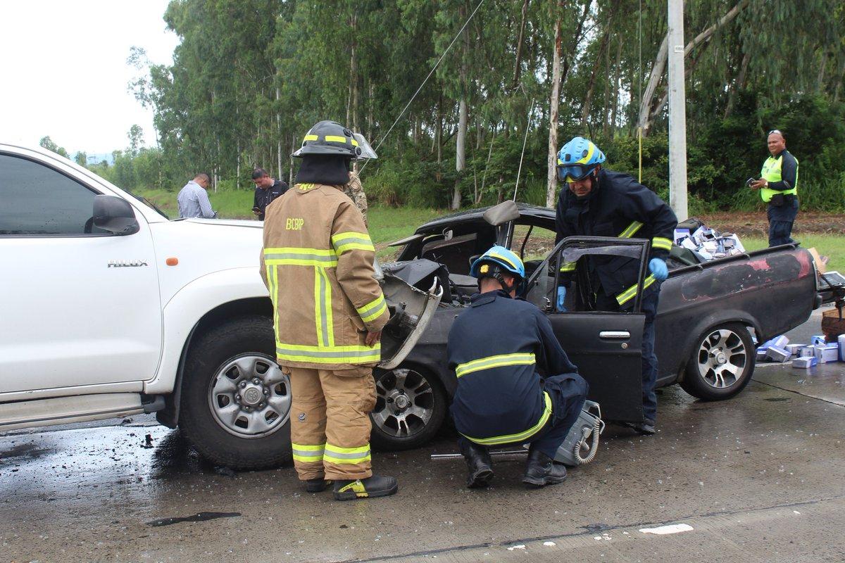 Unidades de los bomberos y la Policía Nacional llegaron al área del accidente de tránsito para iniciar las primeras investigaciones.