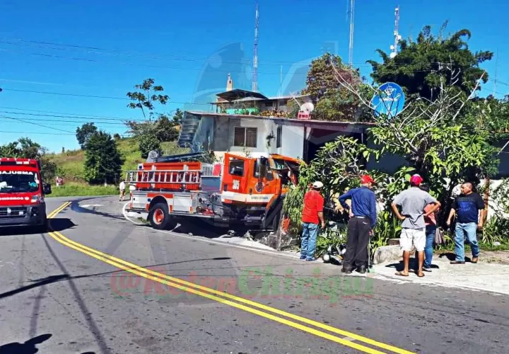 Un vehículo de extinción de los bomberos se chocó contra pared de una residencia, ubicada en Volcán, área de Cuesta de Piedra en la entrada de río Macho de Monte, provincia de Chiriquí.