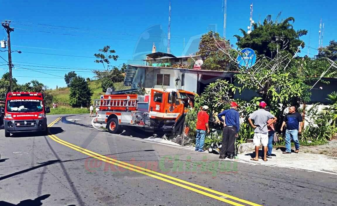 Vehículo de extinción de bomberos se choca contra pared en Volcán