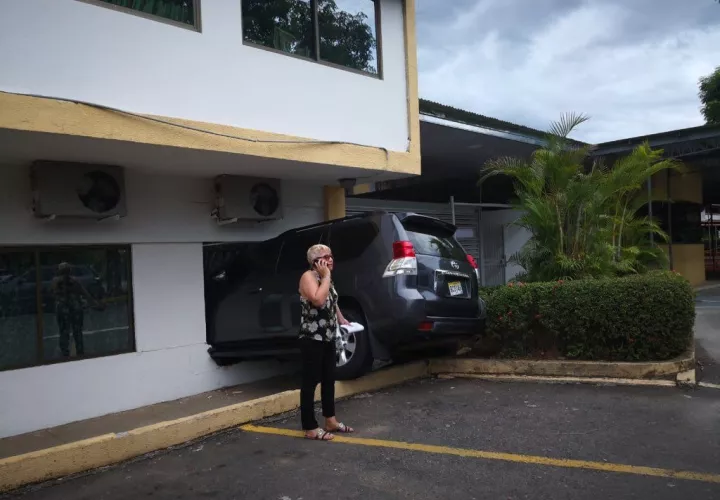 Tremendo susto se llevó el personal administrativo del colegio San Agustín en el distrito de David, cuando la tarde de este martes un vehículo tipo camioneta quedo introducido dentro de la estructura.
