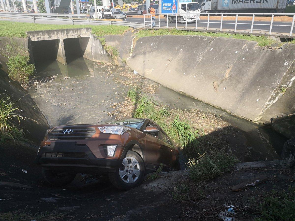 Panamá- Conductor trató de estacionarse y cayó a una quebrada en la vía Tocumen, cerca del centro comercial Los Pueblos.