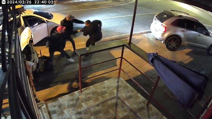 Eran las 10:39 de la noche cuando un sedán de color blanco se estacionó junto a un grupo de cuatro hombres y descendieron dos individuos armados.